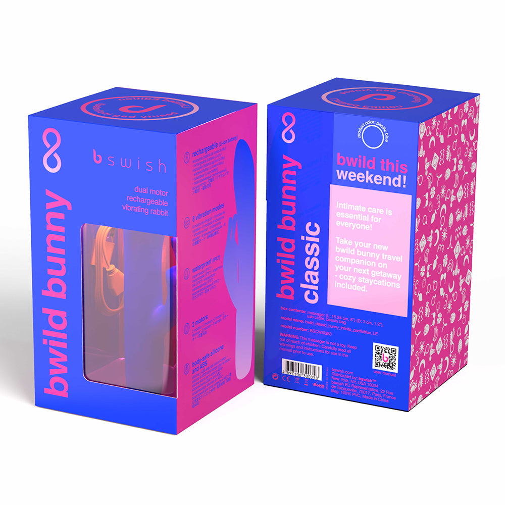 With 5 functions and 2 individual motors, our Bwild Classic Bunny can't be tamed. A waterproof, curved shaft paired with its precise tickler has this pocket pet working overtime for next-level sensations you'll simply adore. You'll adore the sensual touch and silky glide of its curved shaft and precise tickler. And because it's made from nonporous silicone, this bunny can play in the rain.