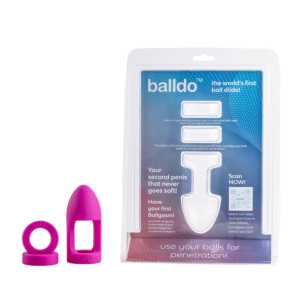 <p>Balls have long been overlooked as a stimulable sexual organ - the Balldo changes that forever. </p><p>By wearing a Balldo, users are perfectly encapsulated in the soft skin-safe silicone cage behind the penis-like conical tip, ready for ease of penetration. When inserted into a partner, the sensation is out of this world - for all involved. </p><p>Not only does the Balldo get testicles inside a partner, it also allows users to thrust, almost identically to with a penis. However, unlike a strap-on, the wearer gets stimulated through the thousands of nerve endings within their testicles and can actually have a ball orgasm - or ballgasm for short.</p><p>The Balldo is made rigid enough for penetration by its patented inner core and by adding one or two of the provided Balldo spacer rings, with an upper ring stretchy enough for Balldo to slip on as easily as putting on underwear. These rings can be added or removed depending on how much loose skin there is above the testicular sac. If the wearer is particularly loose, extra spacer rings can be bought to compensate. </p><p>Balldo gives users a second penis that never goes soft so the pleasure is virtually endless, allowing both parties to reach intense climax. For those who are smaller in size, or that suffer from erectile dysfunction or premature ejaculation, the Balldo offers a second chance to please and be pleased, without the worry of going or being soft. </p><p><b><i>*Images make the toy appear more pink than the color of the actual toy, which is Violet Purple*</i></b></p>