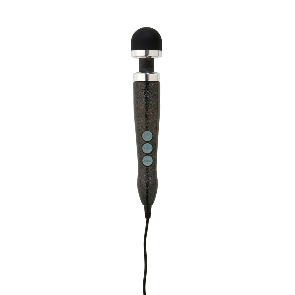 Are you ready for the glitz and glamour of the Doxy Number 3 in Disco black - all the power of the Doxy and Die Cast wand massagers packed into a compact body. Don`t be fooled, smaller Doxy doesn`t mean smaller orgasms - you`ll get just as many earth-shaking orgasms with the Doxy Number 3 magic wand massager. It has all the power and great features that you`re used to from Doxy. A long power cord and big easy to use buttons to make play time easy and fun. Plug-in power so you can say bye-bye to batteries and never lose the oomph in your aaaaahhhhhh! At 11.02 in. long and 12.35 oz, the smaller size means that the Doxy Number 3 is lighter and easier to use, and less obtrusive when used with a partner. The smaller head makes it easier to focus vibrations exactly where you want them for the ultimate orgasmic Doxy experience. The Number 3 has a removable silicone head, unscrew to clean or to use the Number 3 attachments. - Powerful body massager to stimulate, relax muscles and relieve aches and pains - Glittery Disco Black aluminium/titanium alloy body - Variable speed from approx. 3000 rpm to 9000 rpm. - Variable escalating pulse setting - Long 12 ft power cord - Removable silicone head - 3 easy to use control buttons - Comprehensive 12-month guarantee - Discreet delivery in plain packaging - Comes with a plug top power supply unit making it easy to use while traveling with a travel plug adapter
