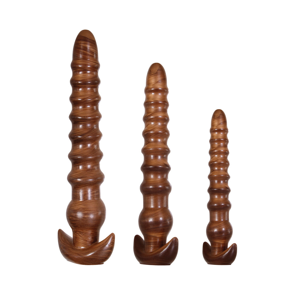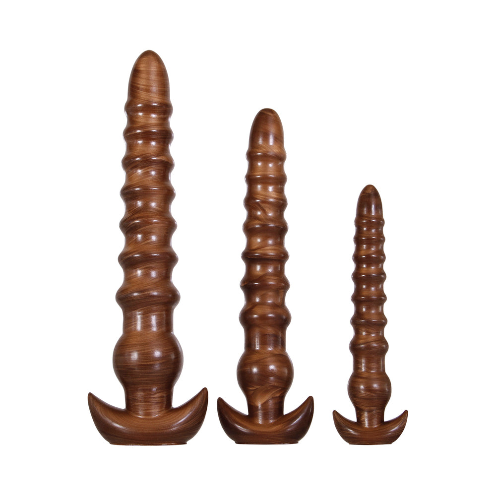 Screwing up has never felt so good! Give your back-door pleasure a twist with this 3-piece erotic ‘hardware' set that swirls and sparkles. It's made from firm yet pliable TPE rubber that's alive with golden streaks and veins and features three traditional shaft shapes in small, medium and large sizes. Studded with rings for delicious incremental sensation, each flexible size offers a different girth for your mood. Tapered tip for comfortable entry. Wide safety base for blissfully easy navigation. Swirly gold metallic 3-piece plug set . Pleasure ring textures enhance sensation . Traditional shaft shape . Tapered tip for comfortable entry . Made from firm but pliable TPE . Flexible to move with your body . Wide handle safety base . Small Medium Large Length: 6.12” 8.03” 9.5” Depth: 1.05” 1.37” 1.67” Width: 1.79” 2.3” 2.85” Insertable: 5.2” 6.75” 8” Weight: Under 1 lb Waterproof and Submersible Phthalate and latex free. Five Year Warranty.