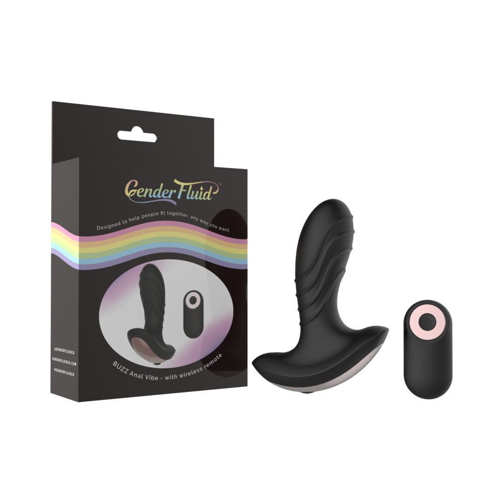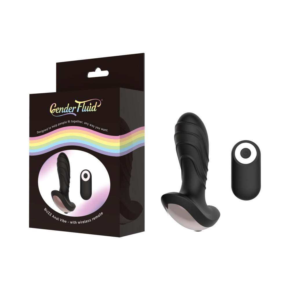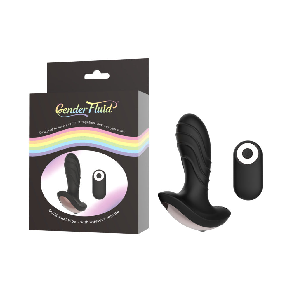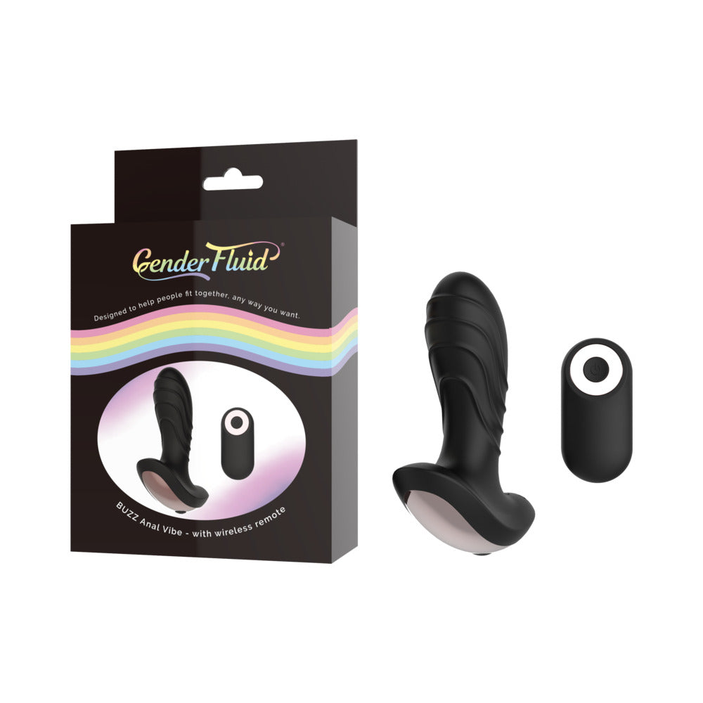 Gender Fluid Buzz Anal Vibe With Remote Silicone Black
