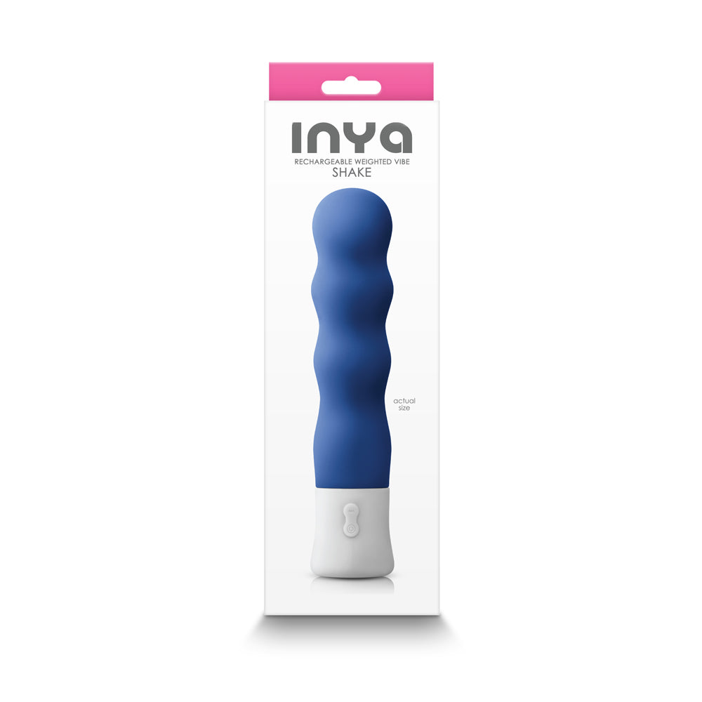 Grab a Shake by INYA and hang on. Innovative technology creates a powerful rumbling and thumping sensation. Made of soft silicone and weighted for erotic pressure, this rechargeable vibe will rock your world! Multi-speed (8 speeds) and multi-function (8 functions).