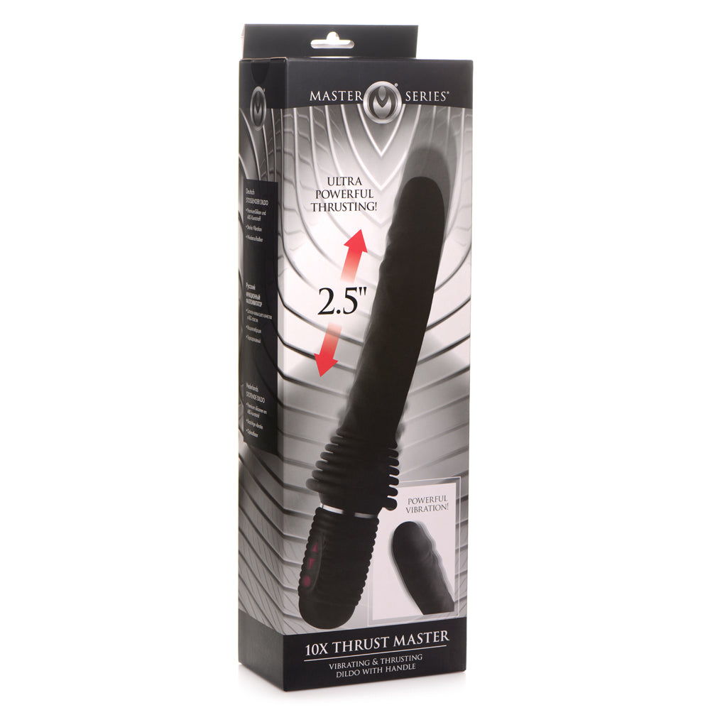 Master Series 10X Thrust Master Vibrating And Thrusting Dildo With Handle