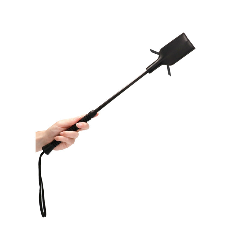 Ouch! Crop Black Rectangle With Black Lace - Large. This short handled rectangular shaped crop with black lace is the perfect way to discipline your partner.