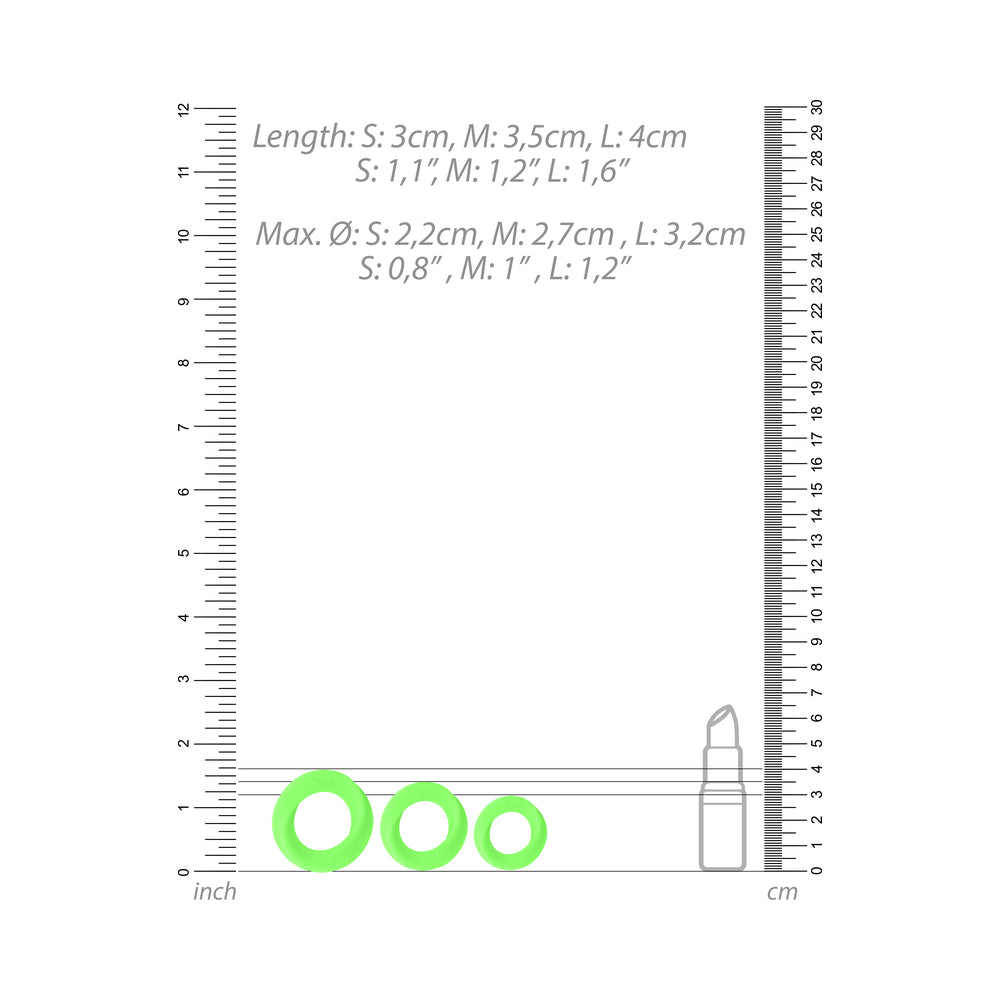Ouch! Glow 3-piece Cock Ring Set - Glow In The Dark - Green
