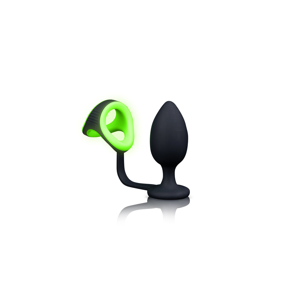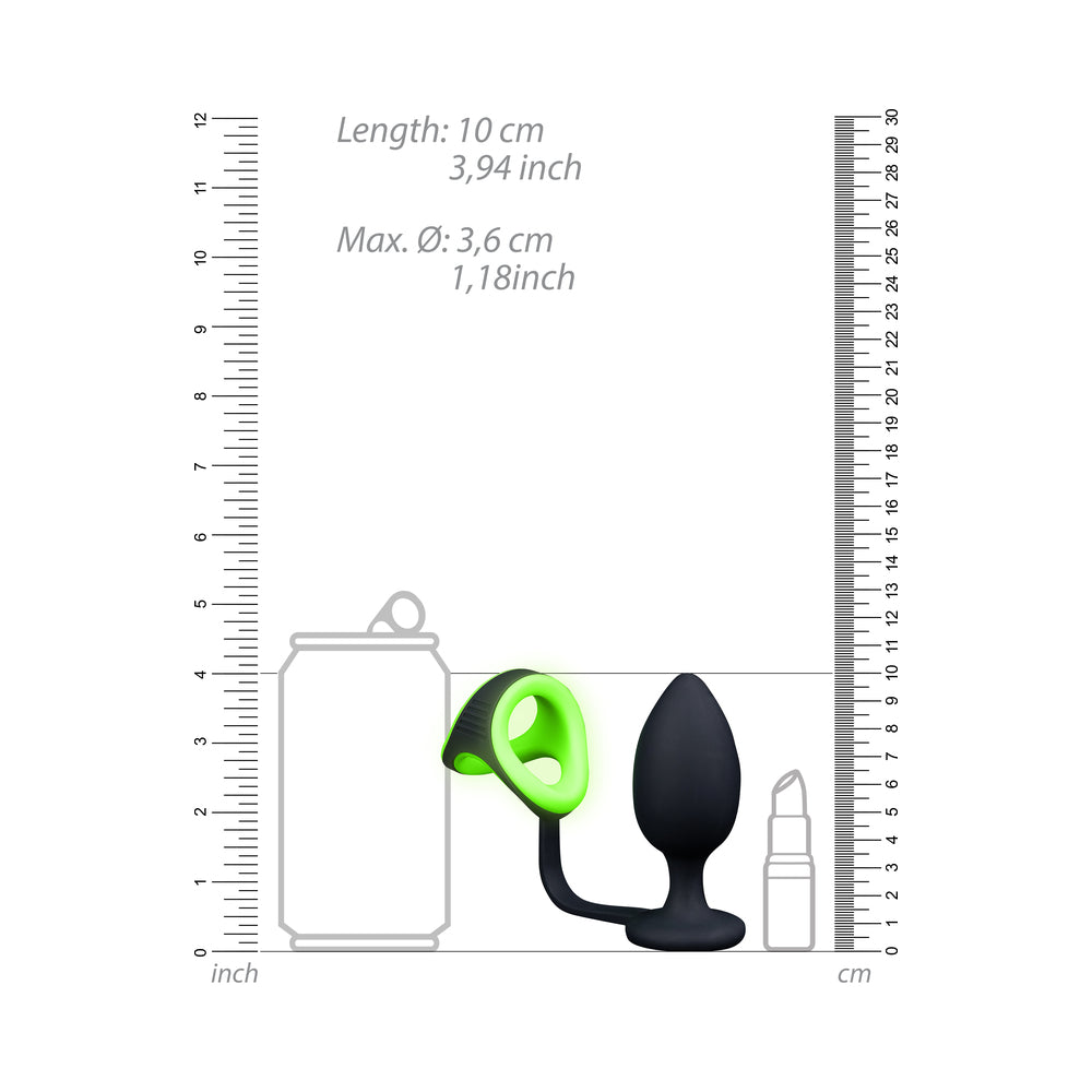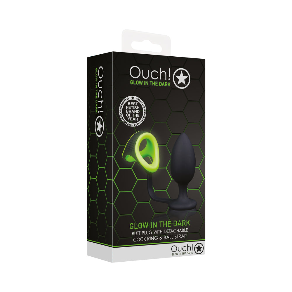 Ouch! Glow Butt Plug With Cock Ring & Ball Strap - Glow In The Dark - Green