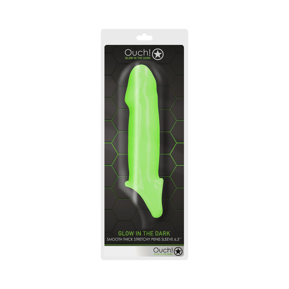 Ouch! Glow Smooth Thick Stretchy Penis Sleeve - Glow In The Dark - Green