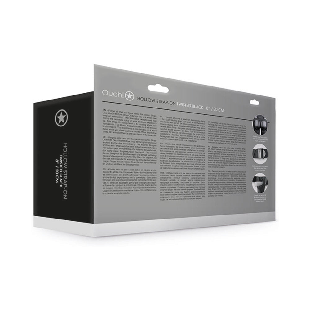 Ouch! Ribbed Hollow Strap-on With Balls 8 In. Black