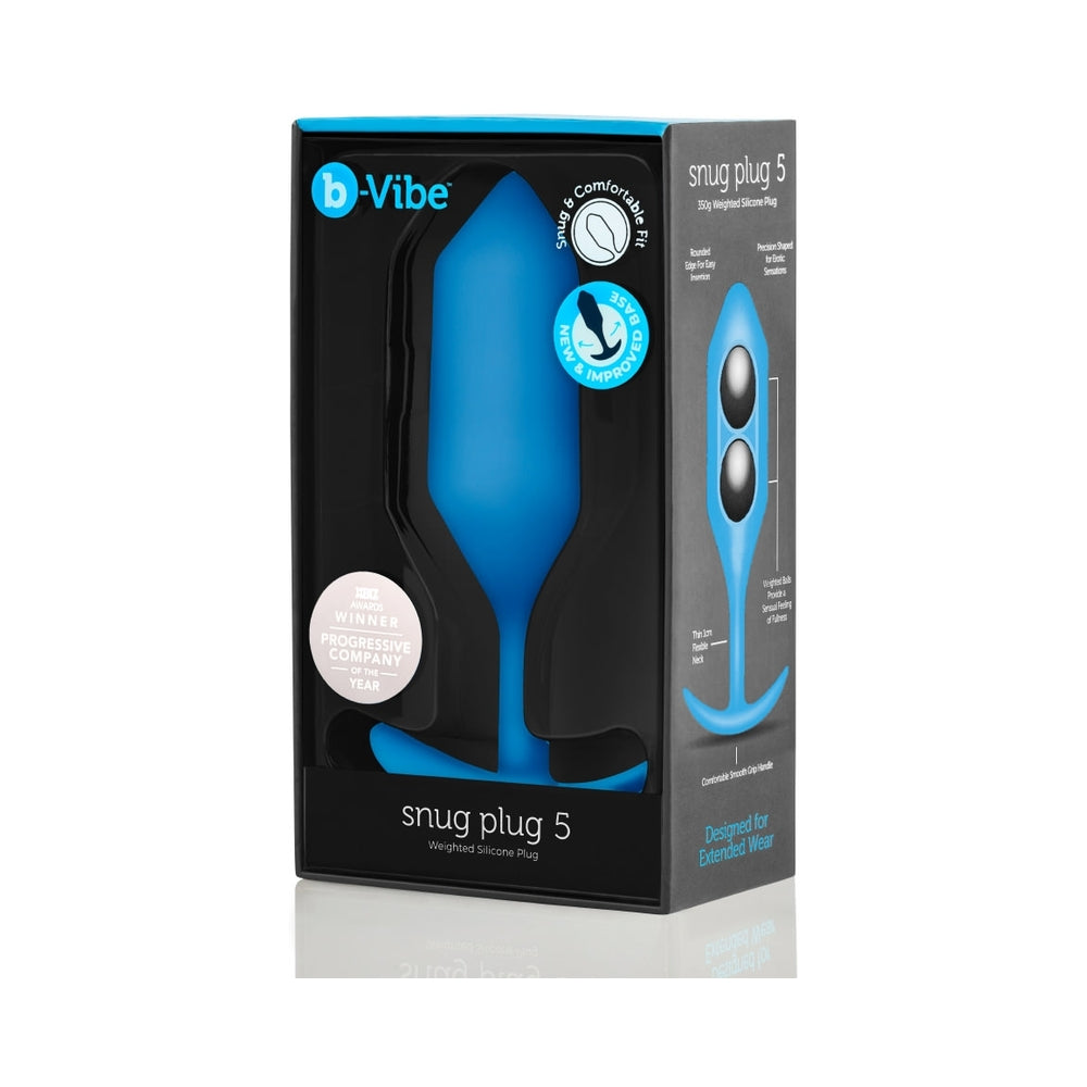 B Vibe Snug Plug 5 Blue Anal Sex Toys. The Snug Plug 5 is an ultra comfortable weighted butt plug that is designed to provide a sensual feeling of fullness. Wear during partner sex or enjoy discreetly for extended wear stimulation. Snug Plugs are made of body safe seamless Silicone and feature a think flexible neck and smooth grip handle. Seamless Silicone weighted butt plug. Designed for discreet extender wear. Rounded edge for easy insertion. Precision shaped for erotic sensations. Weighted balls provide sensual feeling of fullness. Thin, flexible neck. Comfortable smooth grip handle. The Snug Plug 5 is an ultra comfortable weighted butt plug that is designed to provide a sensual feeling of fullness. Wear during partner sex or enjoy discreetly for extended wear stimulation. Body safe seamless Silicone Snug Plug features a think flexible neck and smooth grip handle. Seamless Silicone weighted butt plug. Designed for discreet extender wear. Rounded edge for easy insertion. Precision shaped for erotic sensations. Weighted balls provide sensual feeling of fullness. Thin, flexible neck. Comfortable smooth grip handle. Materials used are 100% body safe. The Snug Plugs are made soft, seamless Silicone that is phthalate free, latex free, and completely non-porous. Designed for discretion and extended wear. The torpedo shape of the snug plugs makes them easy to insert and stay comfortably put. Be sure to keep your plug well lubricated if you intend on wearing it long term. Travel friendly. On the go? Snug Plugs come with a travel sized storage bag to take on your next anal adventure. Includes Guide to Anal Play. We have included the best tips from our trusted team of sex educators in a handy little booklet. Now there is no stopping you from becoming an anal guru! 1 year limited warranty. The snug plugs are covered against defects in materials and workmanship for 1 year. Put your mind at ease by registering your B-Vibe. Categories: Anal Toys, Small Butt Plugs, Medium Butt Plugs, Prostate Massager, P-Spot, Sex Toys for Couples. Size 6.5 inches. Insertable size 5.9 inches, Neck length, diameter 1.9 inches. Neck diameter 0.5 inch. Base width 2.8 inches. Weight 318.2 g e or approximately 12 ounces. Restricted, Amazon Restricted. 2022.