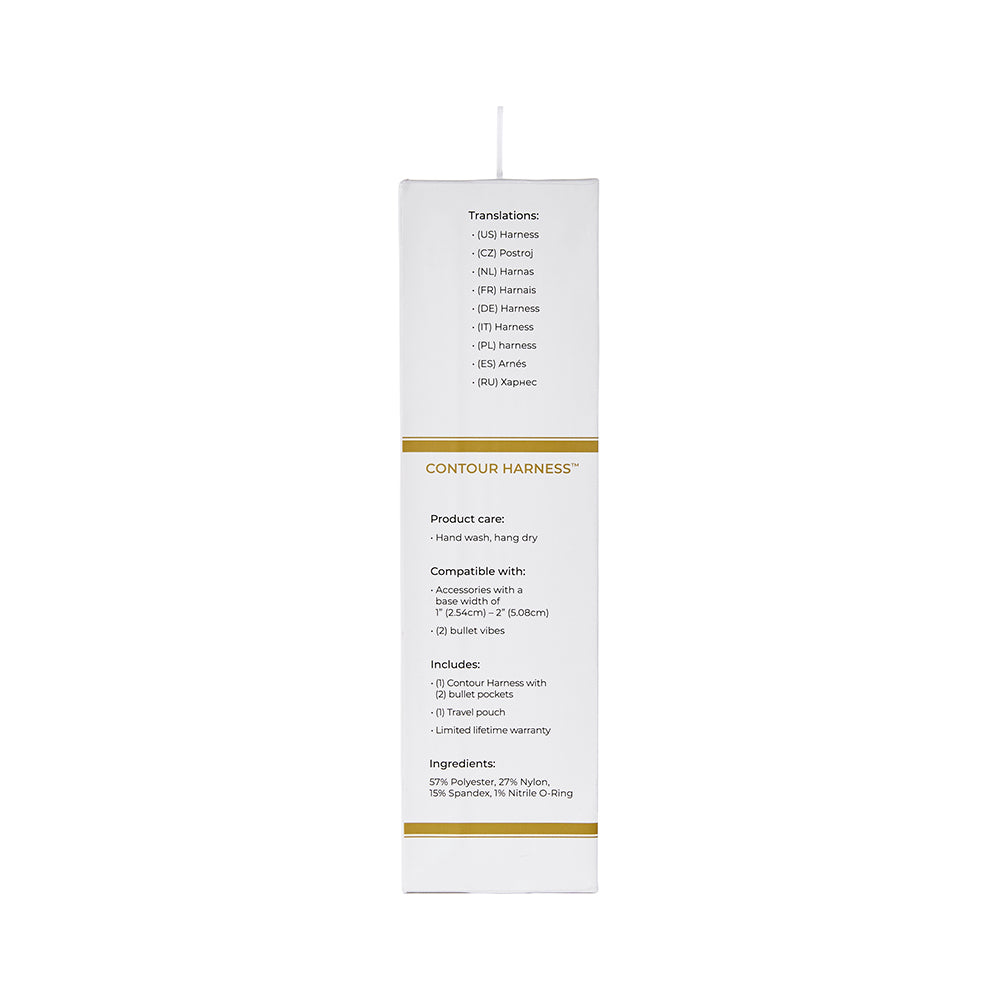 in.An active lifestyle demands a comfortable, all day, all night harness. Em.Ex. was designed for durability, comfort, and fit. The soft fabric provides stretch while keeping accessories firmly secure. With its durable elastic waistband and nitrile (rubber) O-ring, you can fly the friendly skies as TSA will never know youft.re wearing it. Jock style Interior fabric panels secure toys and provide support Built-in nitrile o-ring 1.5in.in. (3.81cm) Designed with (2) bullet pockets to provide extra stimulation Wicking material keeps moisture under control Includes a travel pouch to carry your harness anywhere with easein.